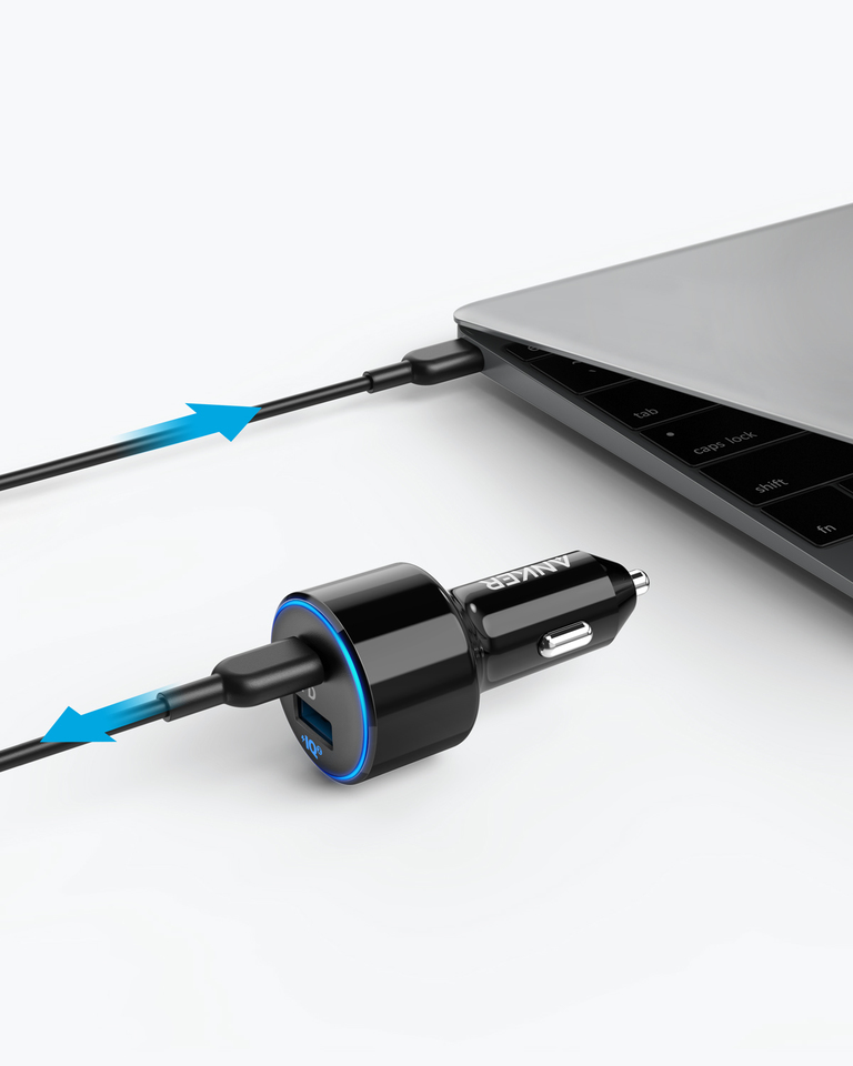 直接從汽車的電源插座為任何標準 USB 或 USB-C 設備充電。 駕駛時同時為設備全速充電。