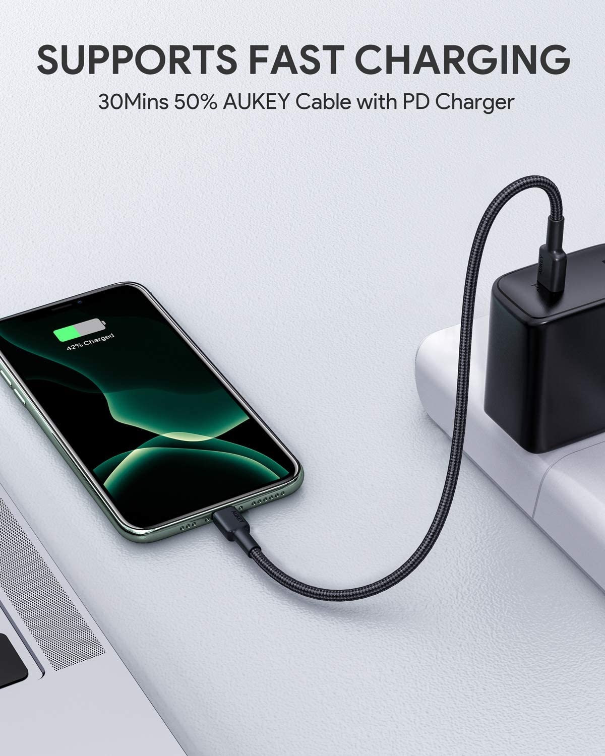 AUKEY USB-C 至 Lightning 連接線 (編織尼龍 0.2 米) [兩條裝]