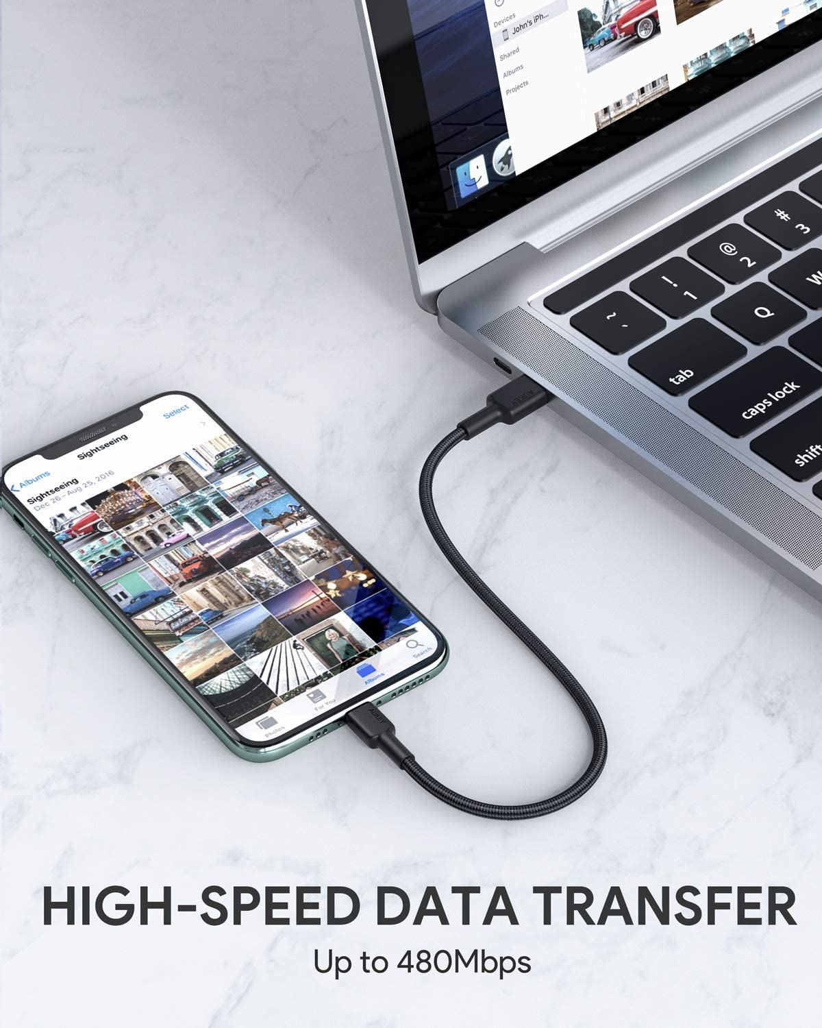 支持 PD 快充為 Apple 設備充電,同時為設備和電腦之間傳輸數據,傳輸速度高達 480Mbps